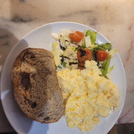 Grilled sourdough, cream cheese with lemon, chives, topped with crunchy fresh cucumber and rich smoked salmon. Garnished with red onion, piquant capers, herbs. Served with side salad